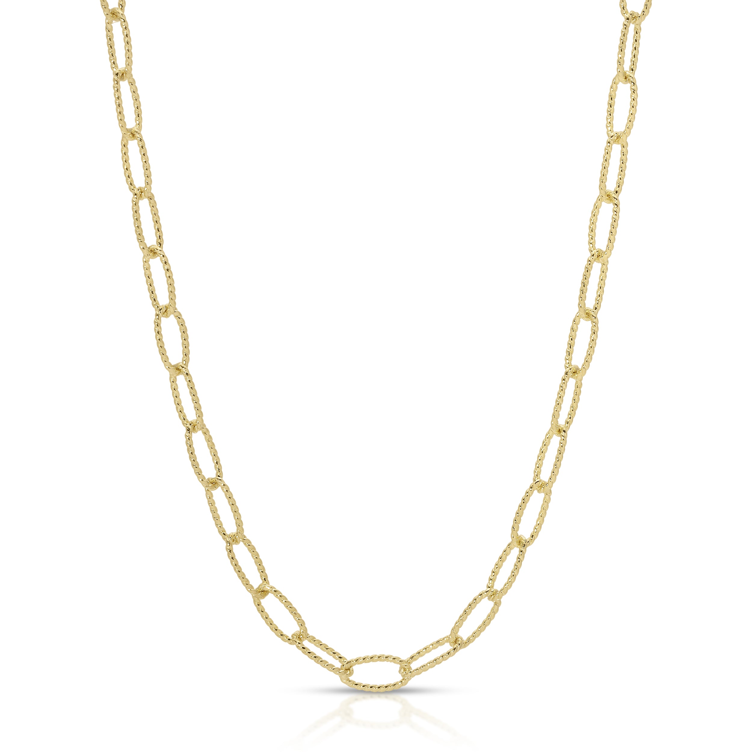 14K Solid Yellow Gold Textured Cable Link Chain.